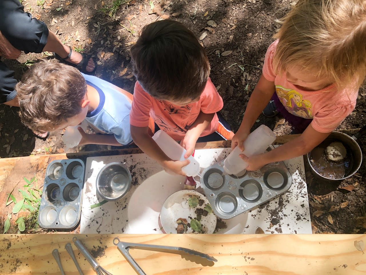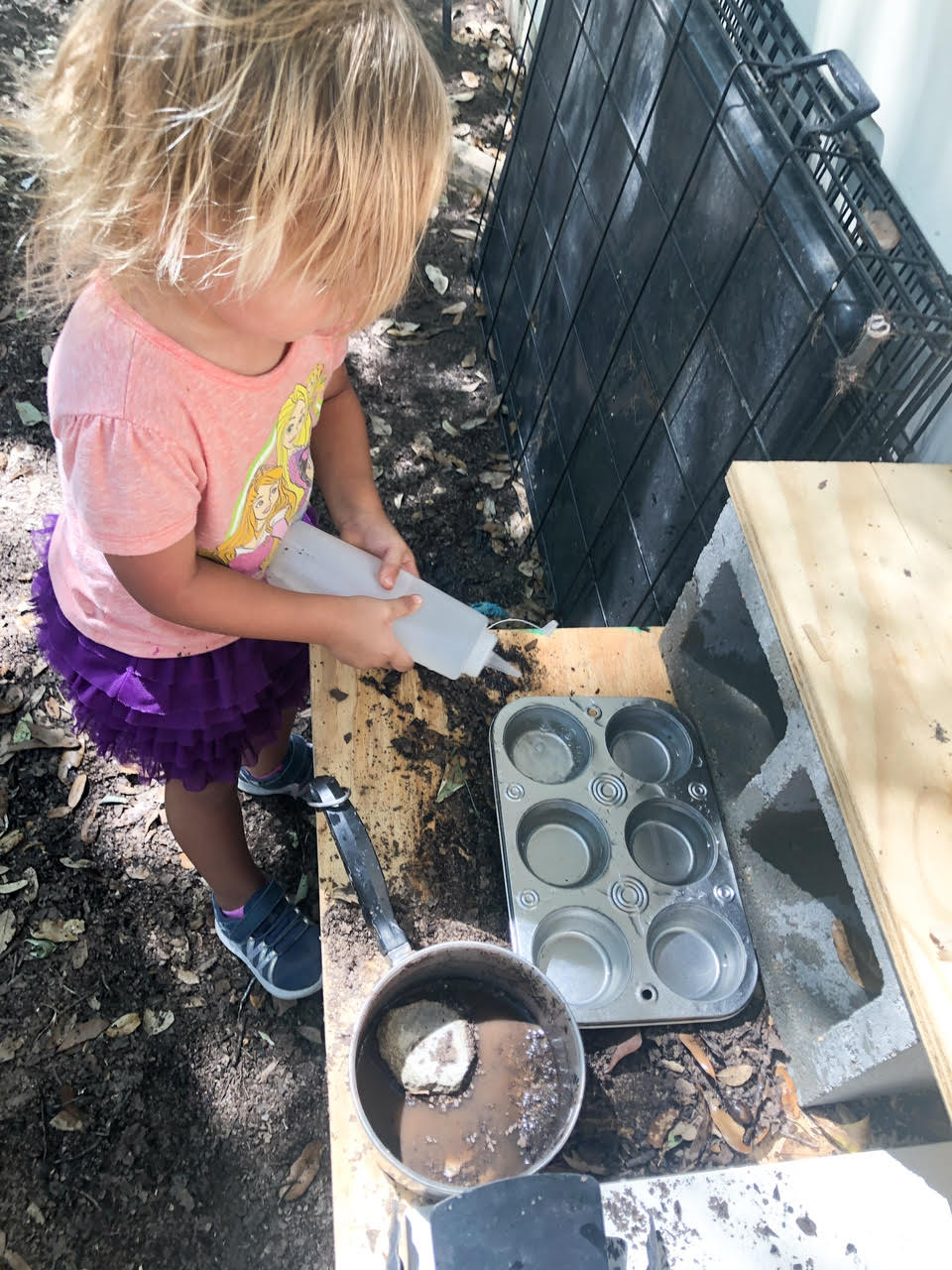 We have a great, simple mud kitchen setup in our backyard. This week we spent lots of time there, cooking and imagining all the muddy things. As we played I asked things like, “What do you think Martha made for Jesus?” “Wow, you are so busy making so many things! – Just like Martha… busy, busy, busy!” And always bringing back to Jesus: “Making food is important! – But what is the most important thing?”