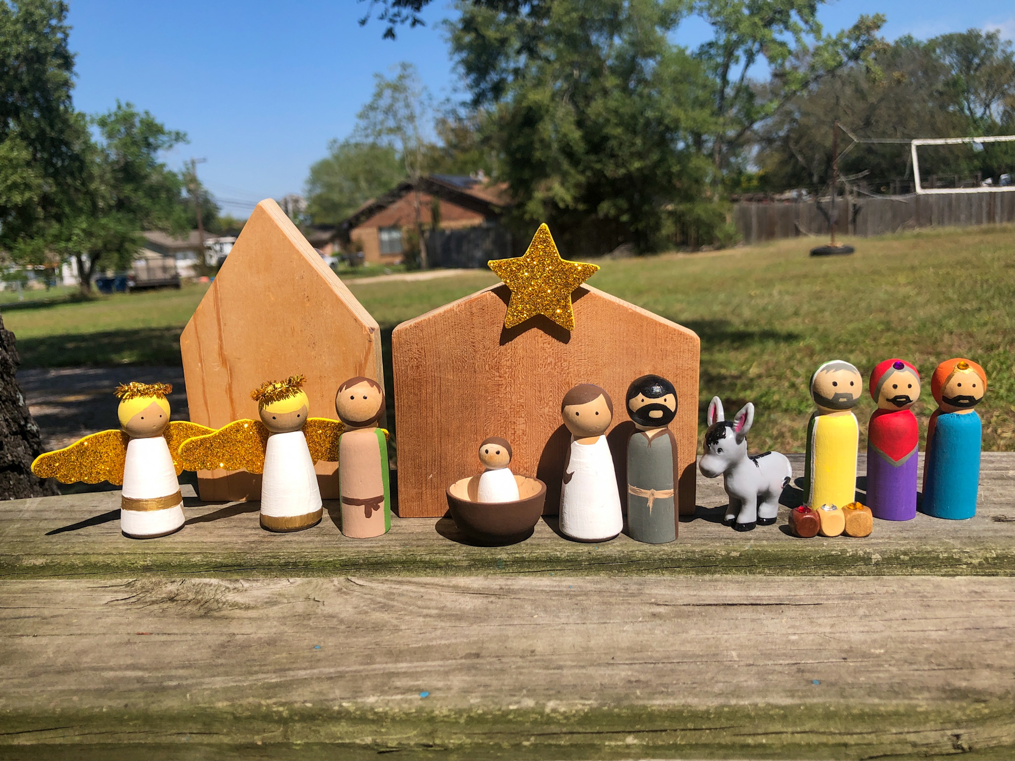 I searched online for Advent for children. The best I could find was a walk through the Jesus Storybook Bible with beautiful picture cards. I printed out the plan and we waded through it, but the JSB was just a little too wordy for her at barely two years old and still reading “Brown Bear Brown Bear”. And then a family that I follow on Facebook, the Anderson Family and “Story of this Life”, suggested a new Christmas tradition. They bought a large fancy Nativity Scene and packaged and wrapped each piece for the month of December. Their children came into the family room every morning to find the single wrapped gift under the tree. Opening it, it led them into family devotions. I loved it. Like really loved it. So I found a not so fancy Nativity and sort of recreated my own Nativity Advent. I plotted out as many days as I could and strategized when to start and off we went. I would read parts of the Christmas Story and gift Sparrow one piece of the Nativity. Then we would head to the table, review the previous days’ stories, and add the new piece as I would talk for the characters and retell the story for her in words she could understand.