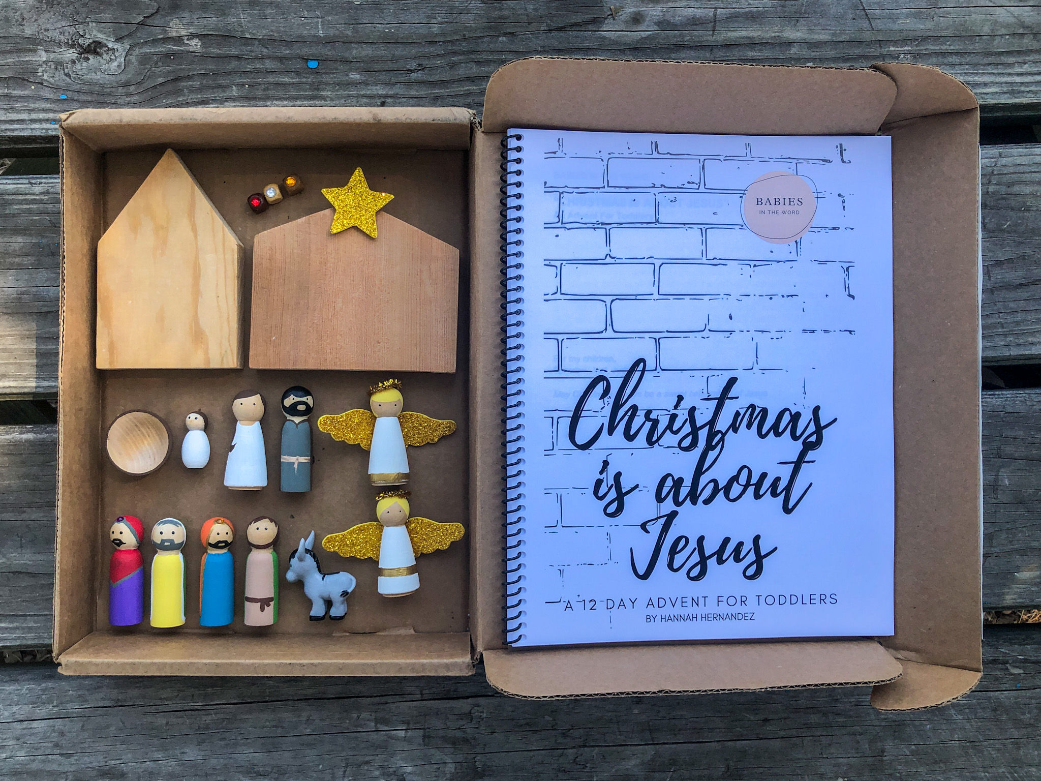 So, present day. – This is what I’ve done. I have created both a Toddler and Children’s Advent for you to use this Christmas at home with your children – of all ages. My prayer is that this set will make it easy for you to create a new tradition with your babies. Even 1 year olds that can barely stand. Tell the story, Mama. Tell the story, Daddy. Tell the story Grandparent, Aunt, Uncle, Teacher, Friend. Don’t wait until your child is “old enough”. Start now. While they’re little. Babies are sponges. Soak them in Jesus.